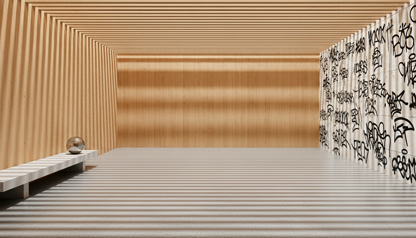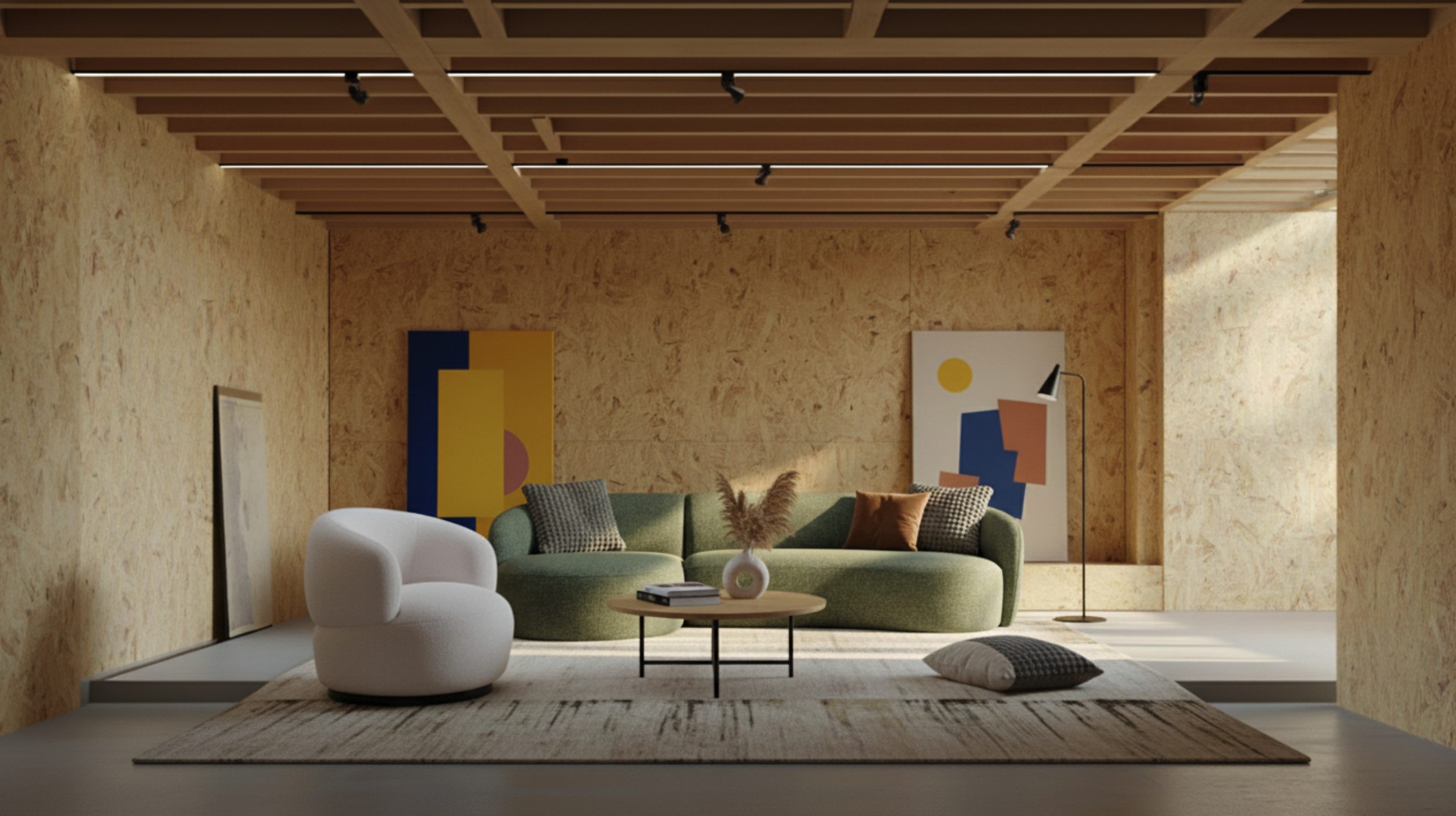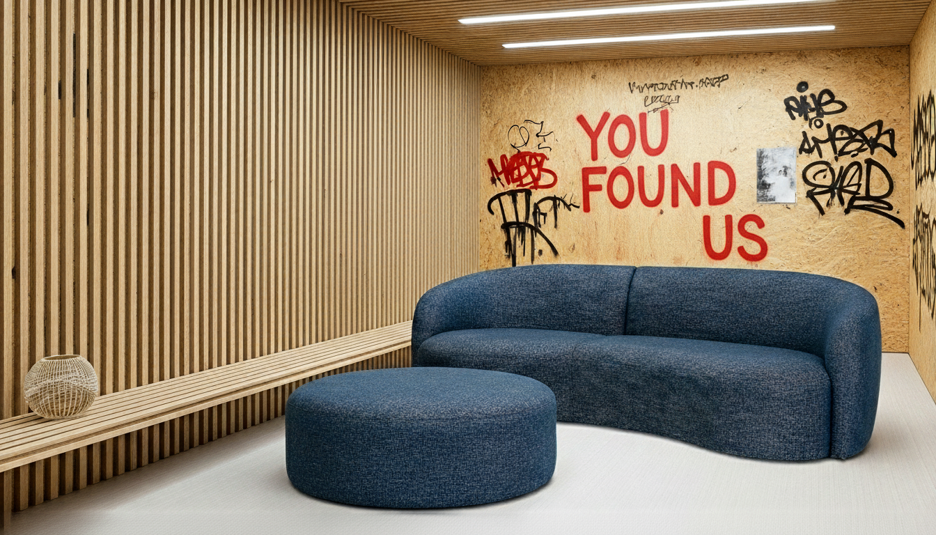 • Aesthetic Integration: To validate the factory-direct ethos, the system embedded authenticity by transforming the physical warehouse infrastructure into a deliberate design element. The “Industrial Studio” concept featured chipboard/timber walls and industrial objects to reflect the retail space, linking raw material context to the final products.