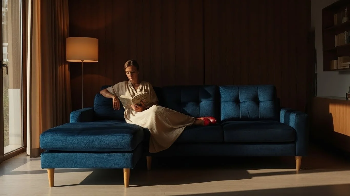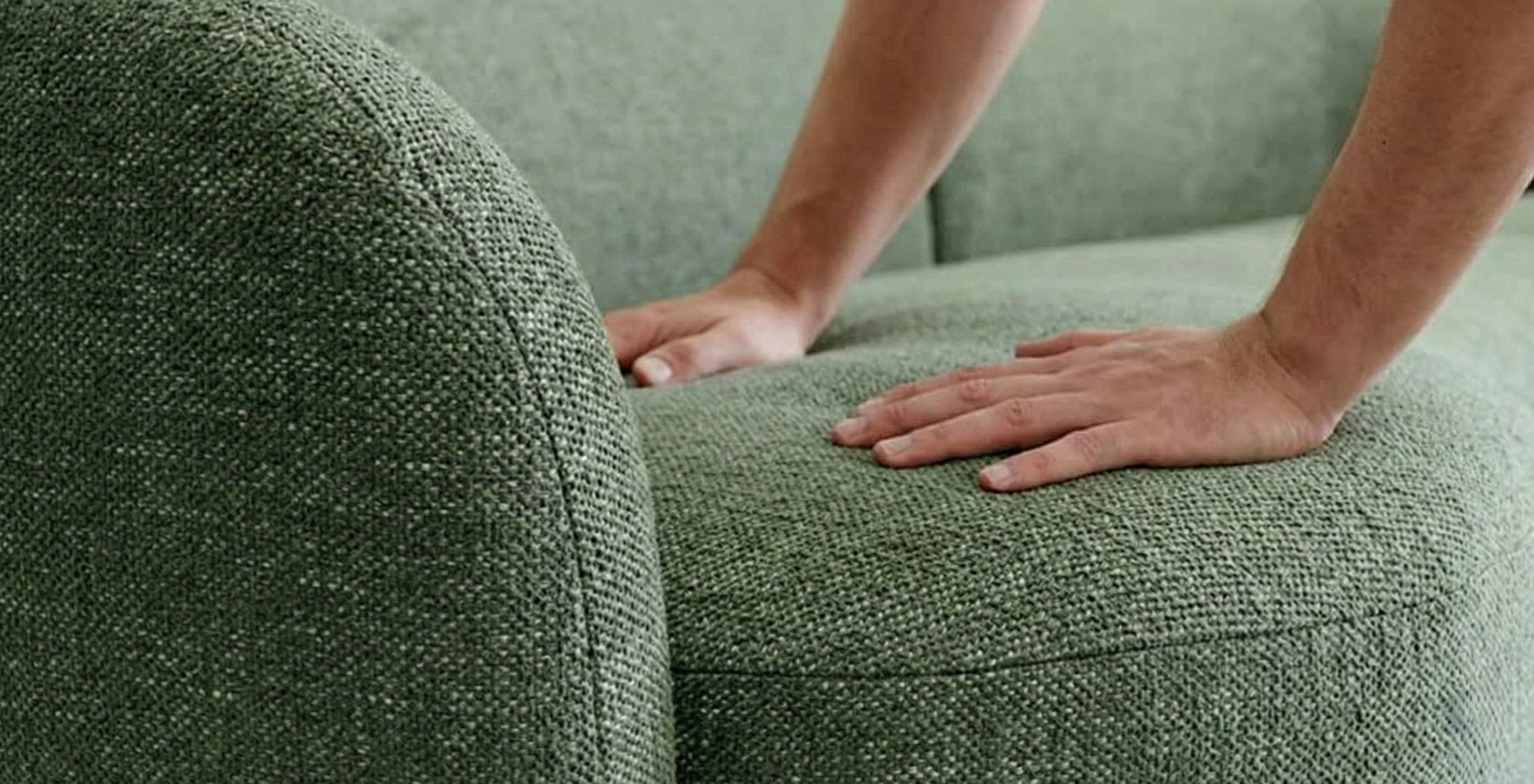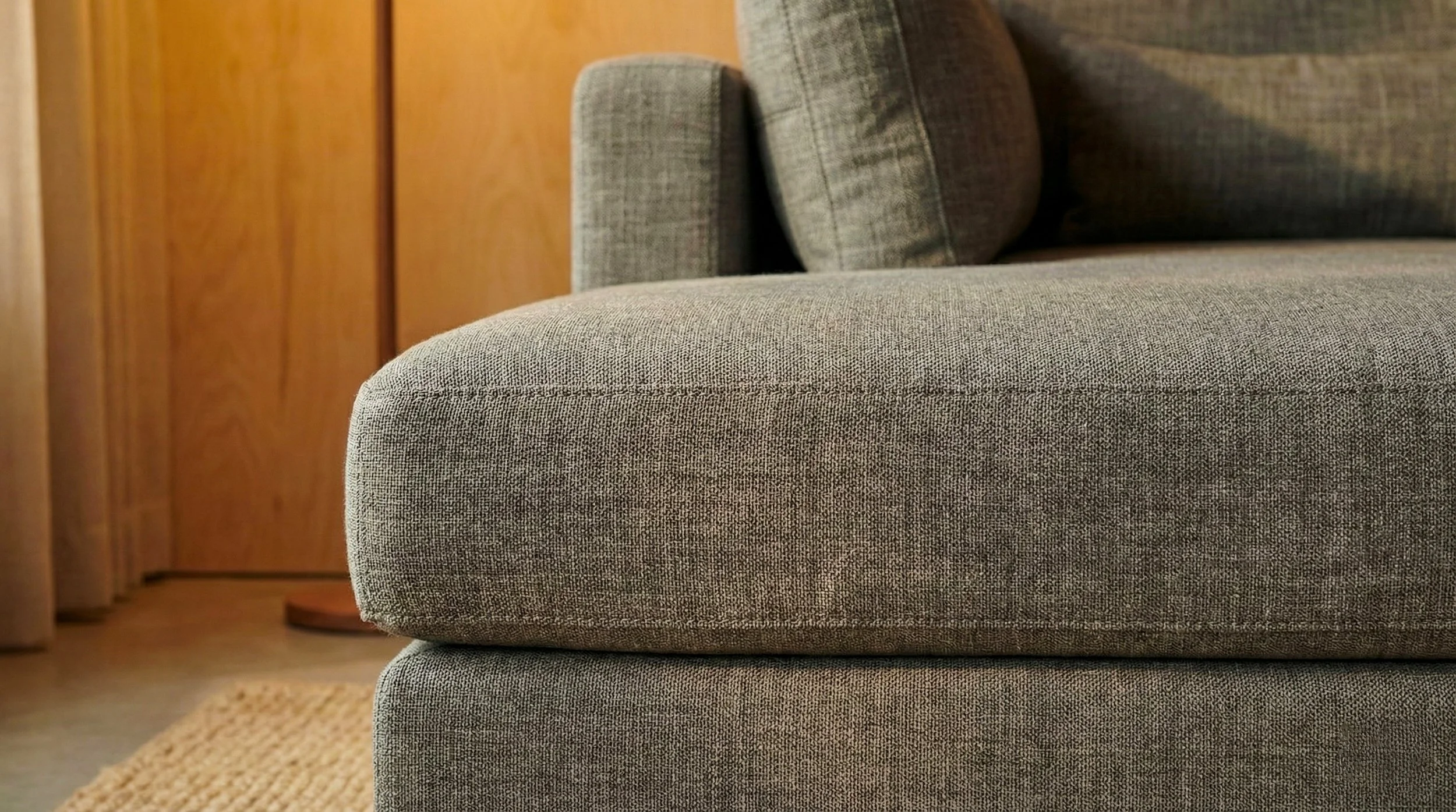 Requires specific shots to convey construction and feel, including a size test (human sits on sofa) and firmness test (hand pushing sofa/feeling fabric) [AI Content Summary, 290, 291]. The content focuses on heroing the product and design detail