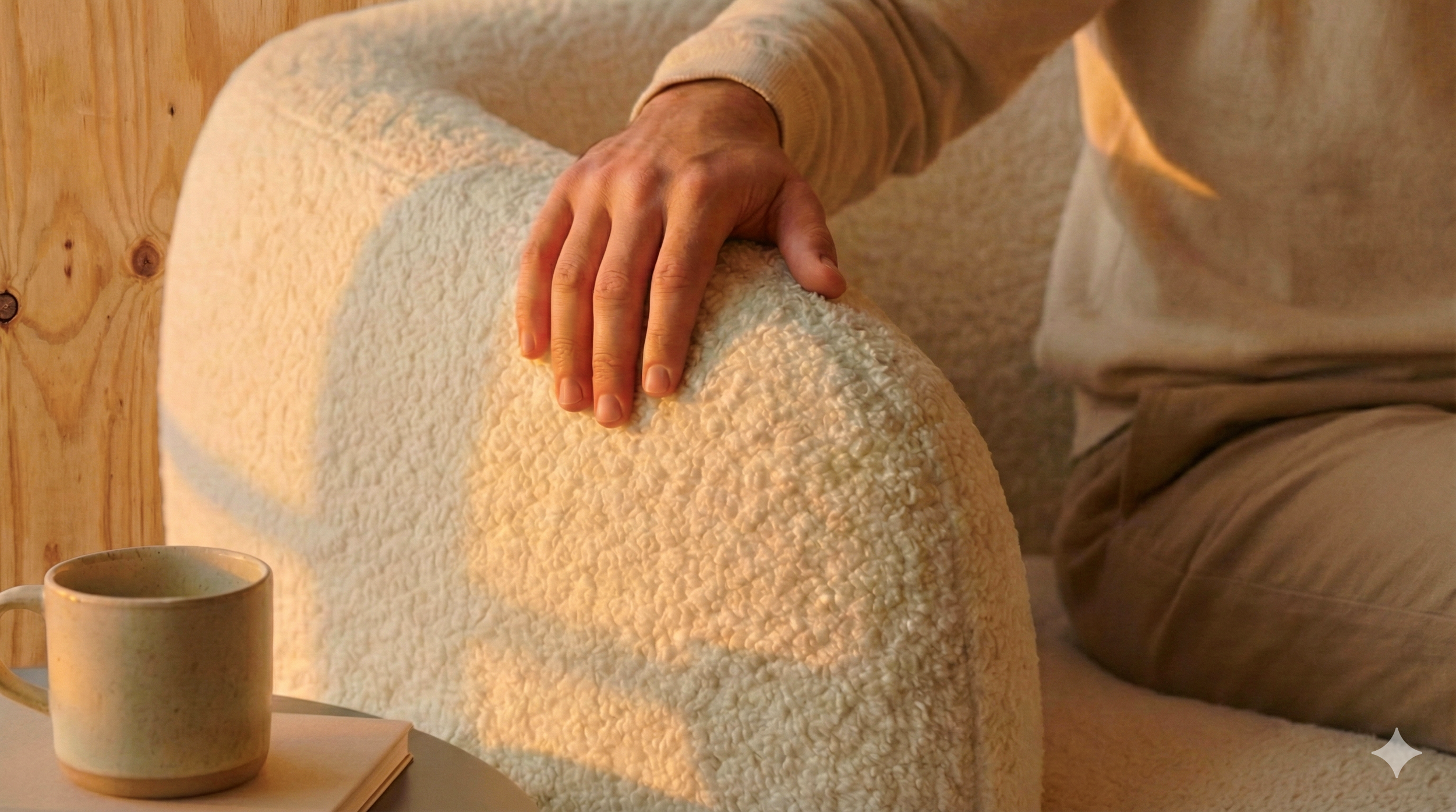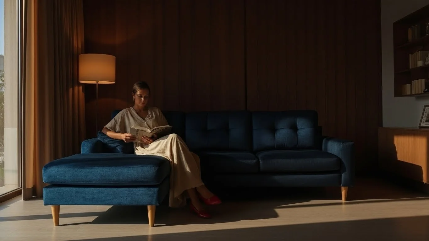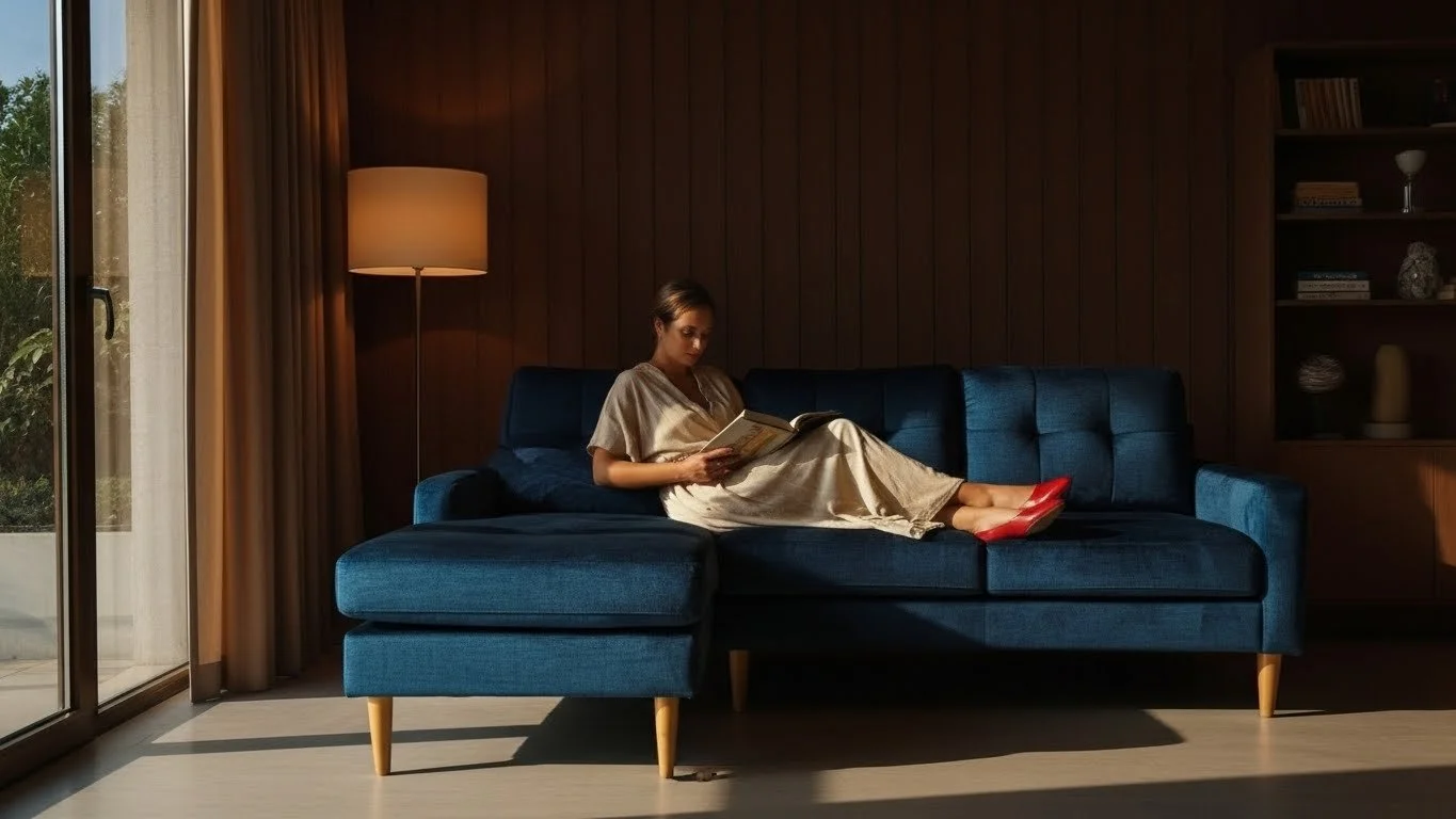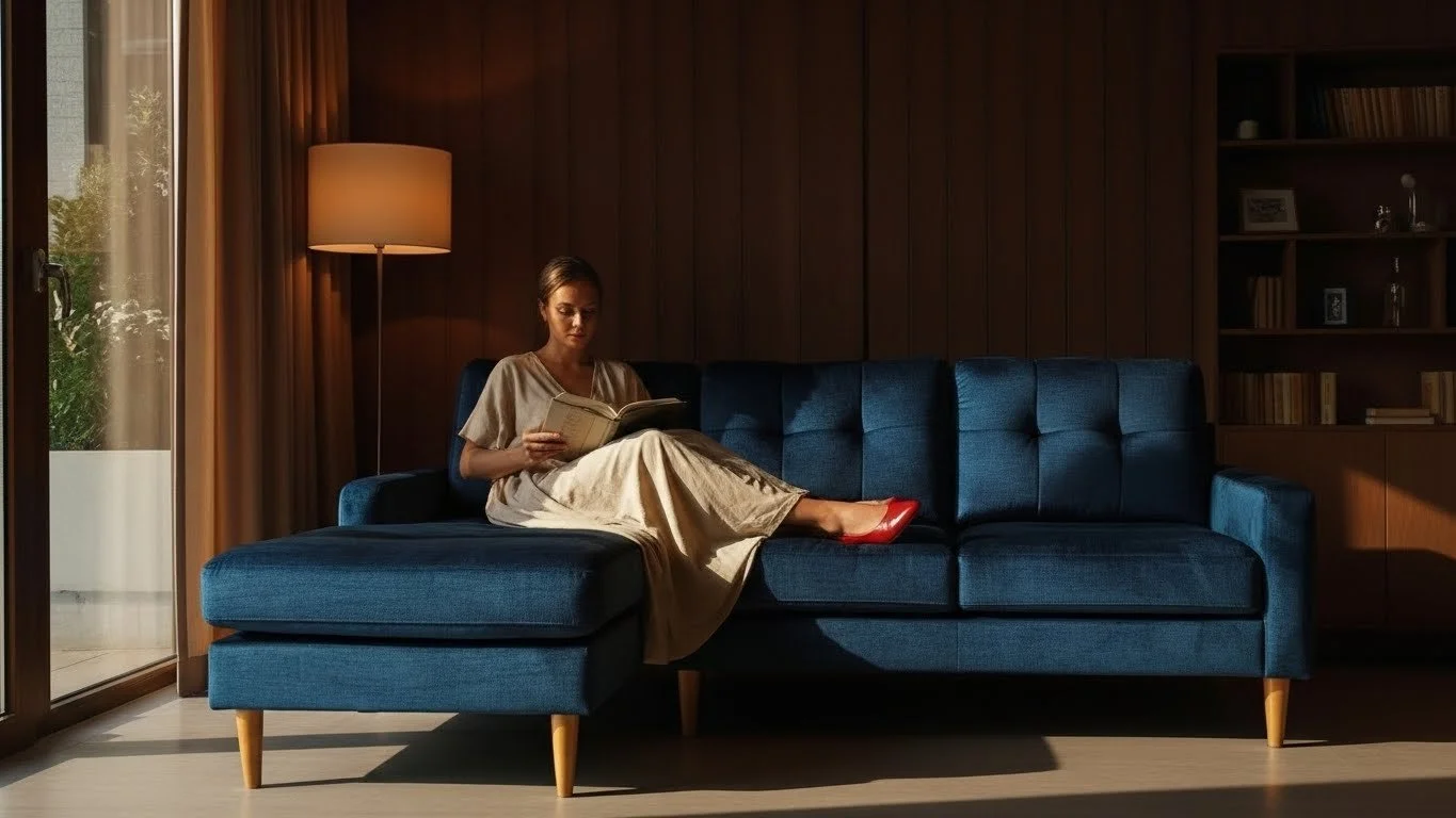 Requires specific shots to convey construction and feel, including a size test (human sits on sofa) and firmness test (hand pushing sofa/feeling fabric) [AI Content Summary, 290, 291]. The content focuses on heroing the product and design detail